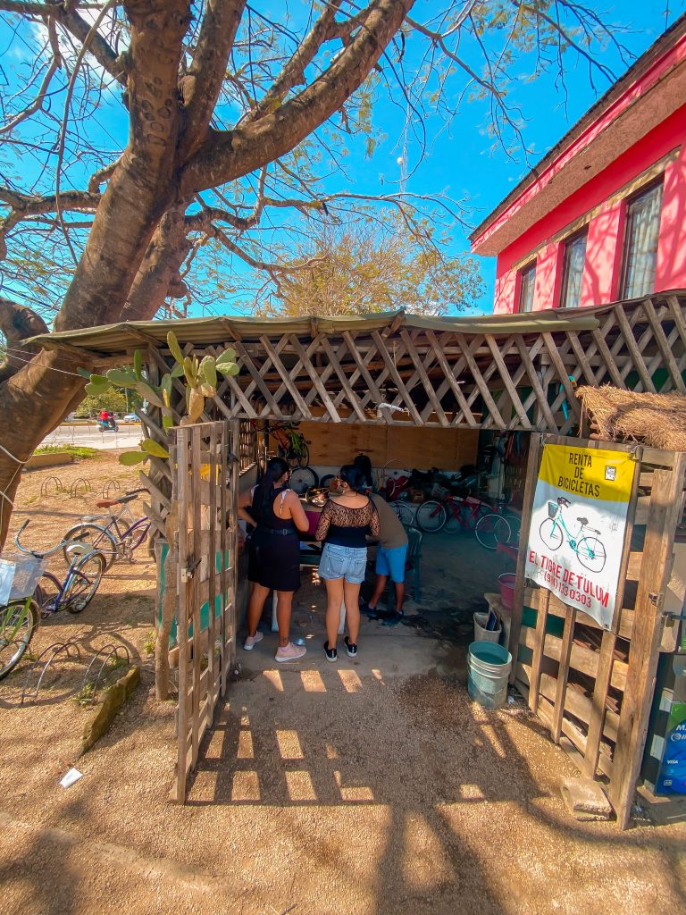 If you want to rent a bike, there are many rental places in Tulum, prices varying from 100 to 200 pesos/day. I really recommend the place I rented my bike from: El Tigre de Tulum, it costs 100 pesos a day (cheapest in Tulum) and the people working there were really serious. I even had an issue (a flat tire) and they came to the beach to bring me another bike, for free.